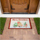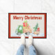 Vun kerstboomschildpad met houten vrachtwagen aan de wand met kerstboom en cadeaus.