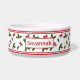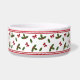 Destei's originele feestelijke patroon van groene en rode kerst Holly / gewone Holly planten samen met rode strikken. Het ontwerp is omlijst door rode kleurranden aan de boven- en onderkant. Er is ook een personaliseerbaar tekstgebied voor een naam of andere aangepaste tekst. Dit feestelijke ontwerp met een klassiek rood en groen kerstkleurenschema is ideaal voor de feestdagen of voor huisdieren met de naam "Holly", bijvoorbeeld.