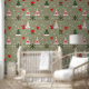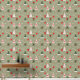 Een charmant vakantiepatroon met versierde kerstbomen, rode bogen, sneeuwvlokken en dennentakken op een zachte groene achtergrond. Dit feestelijke ontwerp vangt de warmte van het seizoen, perfect voor kerstinpakpapier, vakantiedecor of seizoensgebonden ambachten.