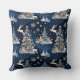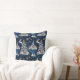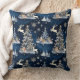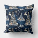 Kussen in een feestelijk kerstthema-toiletpatroon van kerstbomen, rendieren en sneeuwvlokken, tegen een donkerblauwe, sterrenachtergrond