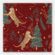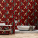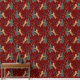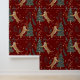 Kerstbomen & Tijgers patroon op donkerrood Behang