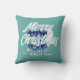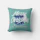 Sierkussen voor kerstboomartistiek Blue Merry Script. Vakantievormgeving met een versierde artistieke kerstboom en trendy wit script.