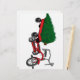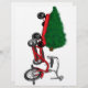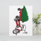 kerstboomlevering in een kleine rode wagen, driewielig stijl. Heel leuk retro cadeau.