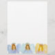 Een kerst briefhoofd met drie zingende engelen in pastel toga's met florale halo kransen en op de achterkant, "Mark the Herald Angels zingen". U kunt de plaatsing van de engelen, de achtergrondkleur en de tekst op de achterkant bewerken om aan uw behoeften te voldoen.