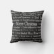 Kerstbegroeten in verschillende talen op zwarte achtergrond.