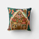 Kerstthema snoep huis, met een kat in de buurt van het raam