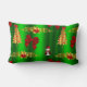 Een schattig kerstontwerp met een patroon van kerstversieringen zoals gouden kerstbomen, gouden heilige en rode bessen, rode zijden bogen en een schattige sneeuwman die is gekleed in een rode fluwelen bovenste hoed en vest, allemaal op een groene achtergrond, om je thuis een kerstkleertje over de feestdagen te geven.