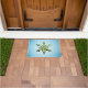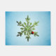kerstboomschilfers met een collage die een prachtige sneeuwvlok van pijnboomtakken weergeeft. Een rode kerstbal hangt aan een van de pijnse takken.