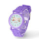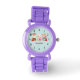 Een horloge met een schattige illustratie met een konijn, een beer en een hert die allemaal gekleed zijn in feestwerk. Schattig en griezelig.