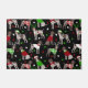 Cute German Shorthaired Pointer dogs met lever en witte getikte jassen zitten en staan in feestelijke vakantieoorden. Santa Hats, geweien, zweet op een vakantieachtergrond met verspreide ornamenten.