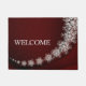 Kerstfeest Crystal Snowflakes Red Rustic Doormat. Uniek, mooi, stijlvol design. Gemakkelijk om gepersonaliseerd te zijn. De stijl, de grootte, en de kleuren van de doopvont kunnen worden veranderd. Overeenkomende objecten zijn beschikbaar.