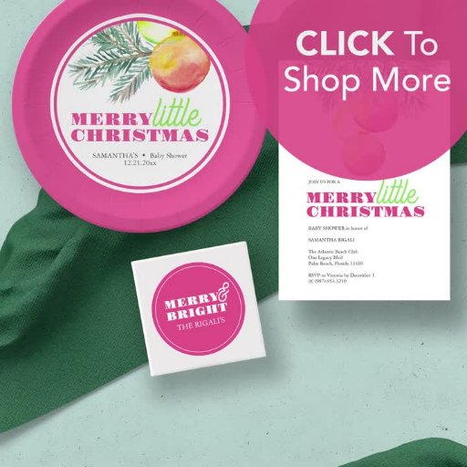 Vier uw Sip and See-Baby shower met onze unieke bewerkbare sjabloon voor kerstfeestuitnodigingen. Met een bovenste rand van originele waterverf kerstballen in levendige tinten van roze, sinaasappel en groen, vangt dit ontwerp de feestelijke sfeer. De typografie "Merry Little Christmas" in magenta en groen voegt een charmant tintje toe. Personaliseer het met uw brunch of Pinkmas Sip en zie details. Kies ervoor om een digitaal bestand te downloaden voor eenvoudig e-mailen of om gedrukte kaarten op luxe kaartvoorraden te bestellen, waarbij de parelglinstering een favoriet is voor dit ontwerp. Kunstwerk en ontwerp van Victoria Grigaliunas.