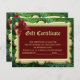 Pas dit cadeaucertificaat online aan, en gebruik voor een kleine onderneming, een persoonlijk cadeau, of de dienst collectieve gift ruil! Kenmerkt de pijnboomtakken met een gouden lijst en een dressiebuikboeg.