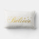 Kerstfeestdag goud Geloof Sierkussen. Geloof in Kerstmis en de vrede, vreugde en vrolijkheid die het meebrengt voor de jeugd en de volwassenen. Het woord "Geloof" in het design van de gouden scripttekst, met gouden sneeuwvlokken die vallen op een sneeuwwitte achtergrond. Perfecte accentuleuze kussens voor uw vakantiehuisdecor.Simplex Knit Fabric; 100% Polyester; Kreukvrij.Wasbaar. Ontworpen door: nadil2 en gemaakt door Zazzle Home.