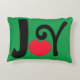 Decoreer uw huis voor de feestdagen met deze unieke kussen met een decoratief 'Joy' woord tegen een kerstgroene achtergrond. Een rood hart wordt gebruikt voor de letter o om de geest van liefde en goede eer te illustreren.