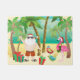 Dit kerstvakantiestrand is uitgerust met schattige en kleurrijke tropische vogels die kerstmanden dragen. Ze lopen op het strand om de Kerstman te ontmoeten onder een palmboom met ornamenten en lichten.