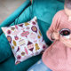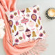 Kerst Vakantie Retro Decorations Bauble Sierkussennen Kussens is voorzien van roze, paarse en gouden kerstballen, klokken, vogeltjes en geschenken. Perfect voor kerstcadeaus en kerstvakantie decor. Creëer door Evco Feestdagen www.zazzle.com/store/evcoholidays