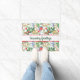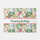 Deze kerstmat maakt je vakantie extra speciaal. Het ontwerp omvat sneeuwpoppen, pindenkegels, holly en houten sterren. Pas de formulering aan.