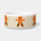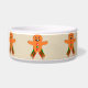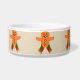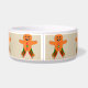 Deze geweldige pet bowl heeft een schattige cartoon van een kleurrijke tandenbroodman. Hij heeft rode en groene knopen, een grote glimlach op zijn gezicht en rode en groene tassels rond zijn benen klaar voor een kerstfeest.