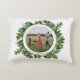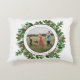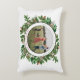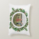 Een prachtige feestelijke kerstkussen met uw aangepaste foto in het midden, geplaatst door een Acorn en een rode holly bessen met een opening. De woorden "Vrolijk Kerstfeest en Gelukkig Nieuwjaar" staan bovenaan de naam van het ontwerp en de familie en onderaan het jaar.