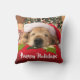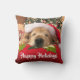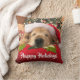 Voeg deze kerst een beetje gouden geluk toe aan je huis! Deze gooiende kussen bevatten een foto van een gouden hondenhond die slaapt op een kussen onder een boom en een rode kersthoed draagt. tekst luidt: "Prettige feestdagen!"