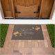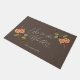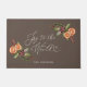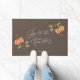 Rustieke kerst thema deurmat met waterverf illustratie van wintergroen met sinaasappel en kruiden. De tekst zegt "joy to the world" in script font.