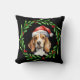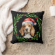 Kerstkussen met een waterverf Beagle en waterverf kerstkrans ontwerp. Voeg de hondennaam toe aan het ontwerp en het is het perfecte cadeau-idee voor dat hondenliefhebber dat je kent, of voor jezelf!
