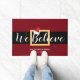 Decorate for the aanstaande feestdagen with this festive and modern doormat. Het is voorzien van een santa-gordelontwerp met een wit script gezegde "Wij geloven" met een accentuerend kerstontwerp. De naam van uw familie en de vastgestelde datum staan hieronder in het wit. Laat iedereen weten dat je in de kerstsfeer gelooft met deze leuke en griezelige kerstboomschild.