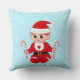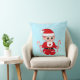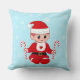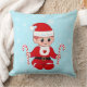 Schattigee Kerstman baby elf & snoepstokken op lichtblauw Sierkussen. Home zoete home tekst kan worden gepersonaliseerd.