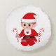 Schattigee Kerstman baby elf & snoep stokken op witte Ronde Kussen.