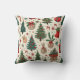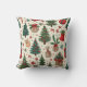 Dit is een kussen ontworpen met kerstbomen en ornamenten.