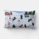 Kerstlabrador Ice Skating Lumber Pillow voor Labrador Fans. Gelukkig en schattig Labradors schaatsen ijs met vreugde! Whimsical Labrador Retriever kerstschilderij geschilderd door Naomi Ochiai uit Japan. Black Labrador, Chocolate Labrador, Yellow Labrador zijn allemaal in het afbeelding geschilderd.