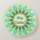 Dit feestelijke ontwerp bestaat uit een cirkel van grafische kerstlampen in kleuren blauw en groen.