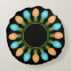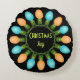 Dit ronde kussen met gemakkelijk aan te passen tekst heeft ook een kleurrijke kerstafbeelding met een cirkel van feestelijke vakantiegloeilampen in blauw en sinaasappel.