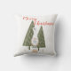 Maak uw huis feestelijker met deze charmante en elegante Kerstman Dwerg Wit kussen! Winter landschap met een Scandinavische dwerg met dunne benen die een blauwe vogel vasthoudt voor een paar dennenbomen. In mooie rode letters staat de quote "Prettig Kerstfeest". Witte achtergrond.