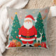 Feestelijke illustratie met de Kerstman omringd door versierde kerstbomen en geschenkdozen, die de vreugde van het vakantieseizoen oproept, gevuld met feest, liefde en traditionele kerstsfeer.