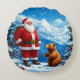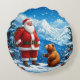 Kerstman ontmoet vriendelijk Beer in Snowy Mountai Rond Kussen