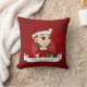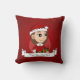 Drijf kussen met een afbeelding van een schattig glimlachend meisje met lang bruin haar, draagt het meisje een Sinterklaas met rood pet en houdt een cadeau vast; in een rode cirkel op een rode achtergrond, met aanpasbare tekst-sjabloon voor jouw naam of bericht