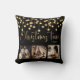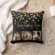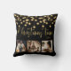 "Kersttijd" in mooi script op een zwarte achtergrond. Vervang foto's met 3 van je favoriete foto's. Goudfaux snaarlichten/lantaarns hangen naar beneden. Verander het jaar en wat een mooie kussen. Elegant. Een perfect cadeau.