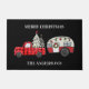 Ideaal voor je kamper, ongeacht de grootte of stijl - rode vrachtwagen met kerstbomen die een kleine kamper voor kerstmis heeft bedekt. Pas je eigen tekst aan.