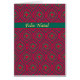 Een stijlvolle kerst Kaart met de groet (Feliz Natal) in het Portugees, met een all-over patroon van bubbels en sterretjes in feestelijk rood en groen met goudkleurige letters. U kunt ook uw eigen bericht toevoegen aan de binnenkant van de kaart.