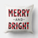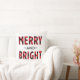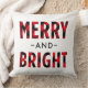 Een levendige "Merry and Bright" sierkussen met grote letters gevuld met een felrood en zwart buffelruitpatroon op een schone witte voorkant. De achterkant toont de volledige heldere rode buffelruit voor een vrolijk tweezijdig kerstontwerp. Een leuk, opvallend kerstaccent dat energieke seizoensstijl naar elke kamer brengt. Alle tekst wordt afgedrukt zoals weergegeven.