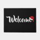 Deurmat is in zwart-wit afgebeeld met een kerstmuts. Pas deze mat aan of koop zoals hij is.