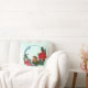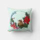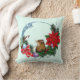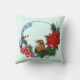 Schattigee bruine muis op een kerstkrans. Ornamenten, poinsettias en blauwe Keltische knoop werken aan de kerstkrans.
