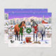 Een winterkerstscène met paarden in sneeuw.