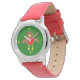 Dit geweldige horloge heeft een schattig kerstRobin-personage met een felrode borst, bruin lichaam en donkere ogen. Het heeft zijn gele snavel breed open, terwijl het een kerstkarol zingt. Zijn vleugels zijn uitgestrekt terwijl het vrolijk op Kerstmis wacht.