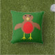 Deze geweldige buitenkant kussen heeft een schattig kerstRobin-personage met een heldere rode borst, bruin lichaam en donkere ogen. Het heeft zijn gele snavel breed open, terwijl het een kerstkarol zingt. Zijn vleugels zijn uitgestrekt terwijl het vrolijk op Kerstmis wacht.