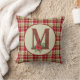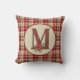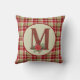 Deze festieve kussen heeft een plaid achtergrond met een robuuste monogramletter M gevuld met schuurhout en een waterverf poinsettia bloemversiering. Landelijke kerstkleur palet.