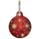 Kerstsneeuwvlokken van goud op een rode achtergron huisdierpenning