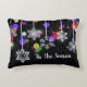 Zilveren kerstsnowflake siervoorwerpen met kleurrijke bokeh-lichten op zwart met sneeuwbekleding.